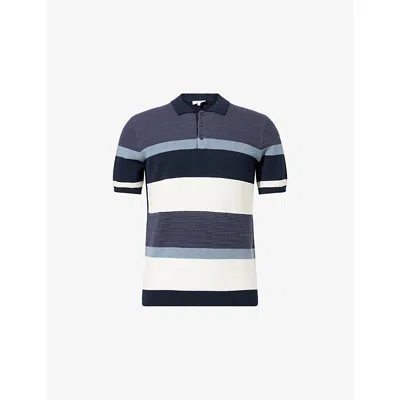 Mens Calle Striped Cotton-knit Polo Shirt Navy Xl
