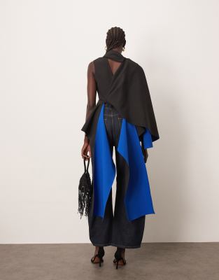 Racer Neck Asymmetric Top With Color Block Detail In Multi