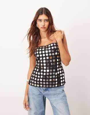 Mirror Embellished Minimal Longline Cami Top In Blue