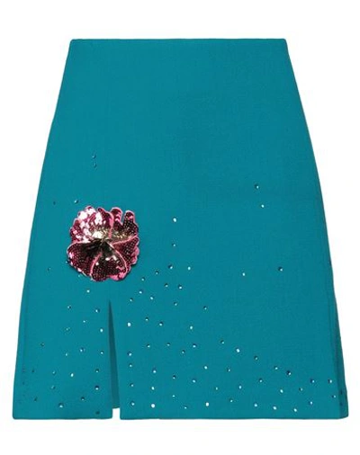 . Woman Mini Skirt Turquoise Size L Wool In Blue