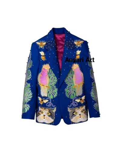 Pre-owned Men 2pc Custom Made Frog Hand Embroiderd Western Wedding Cocktail & Prom Outfits In Blue
