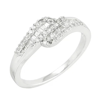 Women's Baguette Cut Natural Diamond Stacking Ring In White Gold