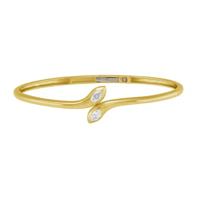 Women's Gold / White Twin Emerald-cut Diamond Open Bypass Bangle In 14k Yellow Gold