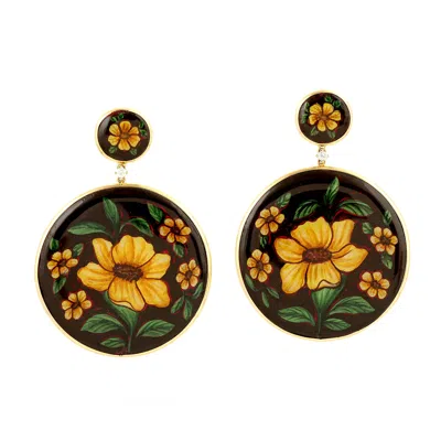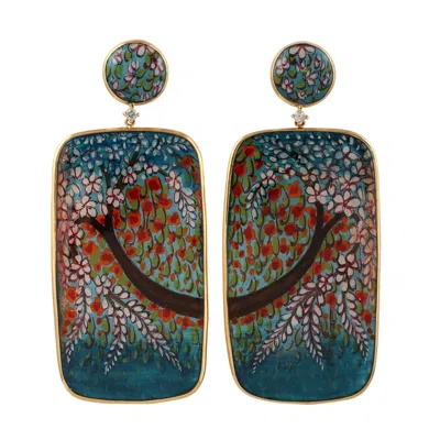 Women's Hand-painted Nature Scene Bakelite Earrings With Diamond Accent – 18k Gold