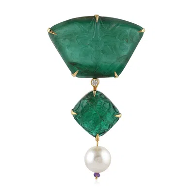 Women's Carved Emerald & Amethyst Pearl Pendant In Gold – Prong Diamond Designer Fine Jewelry In Multi
