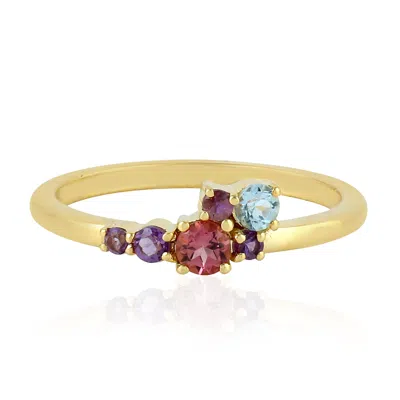 Women's Amethyst & Tourmaline Blue Topaz Gemstone Band Ring In Yellow Gold