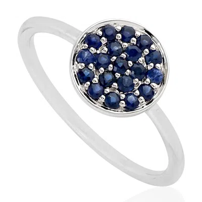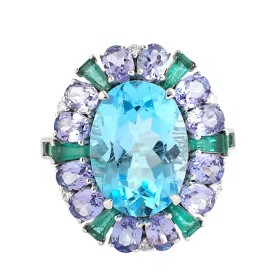 Women's White / Blue Blue Sapphire Gemstone Cocktail Ring In 18k White Gold In Multi