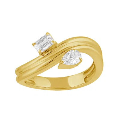 Women's Gold / White Emerald-cut Diamond Ribbed Bypass Ring In 14k Yellow Gold