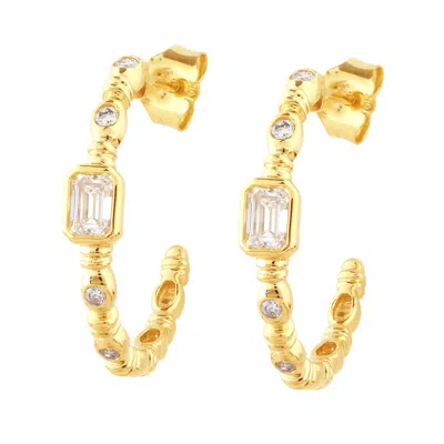 Women's Gold / White Emerald Cut & Round Diamond Beaded Hoop Earrings In Yellow Gold