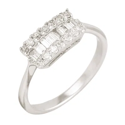 Women's 18k White Gold With Baguette Natural Diamond Cocktail Ring