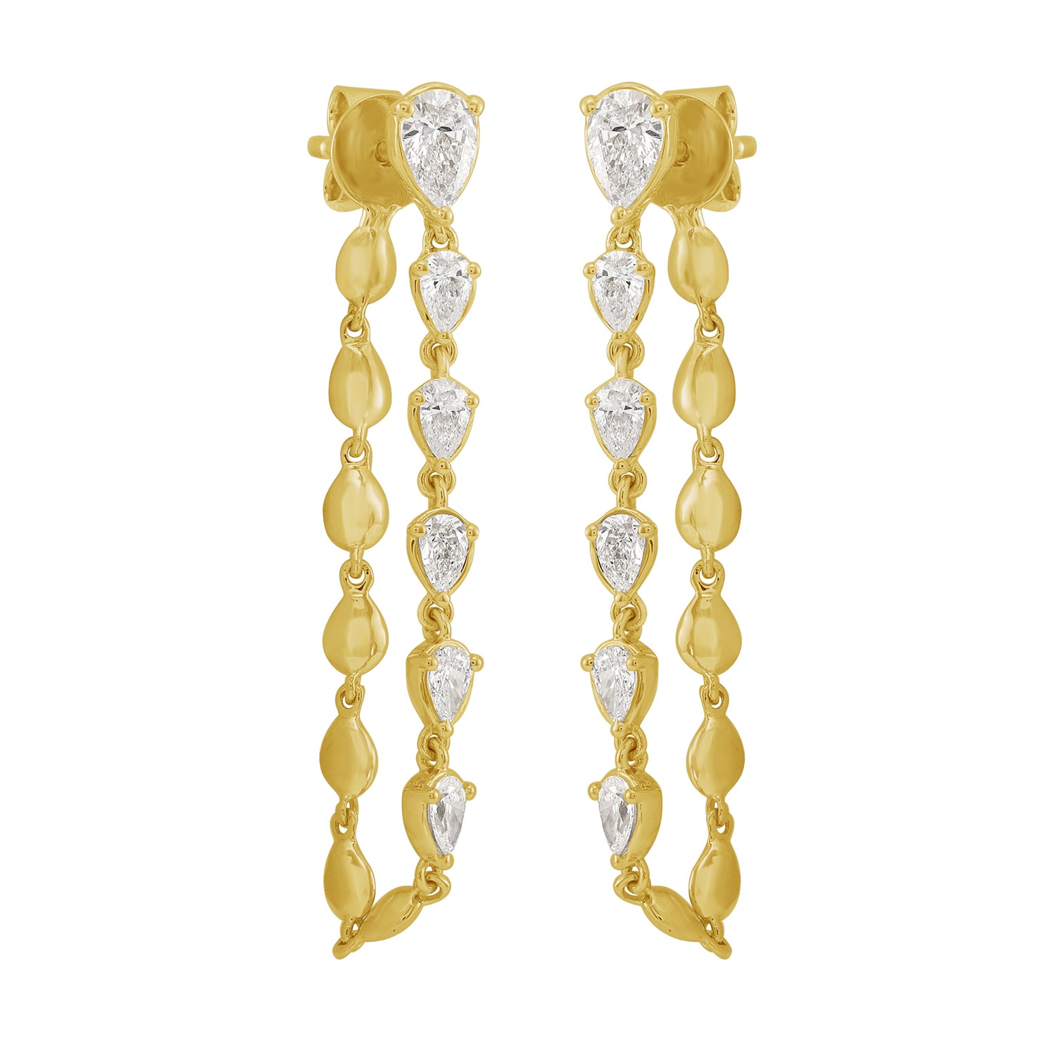 Women's Gold / White Pear-shaped Diamond Linear Drop Earrings In 14k Yellow Gold