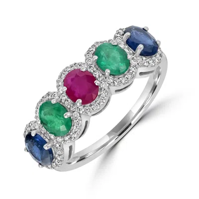 Women's Multi Gemstone Pave Diamond Band Ring In White Gold