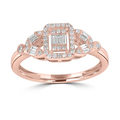 Women's White / Rose Gold Modern Geometric Rose Gold Ring With Baguette Diamonds