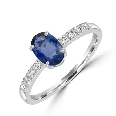 Women's White / Blue Blue Sapphire Gemstone Pave Diamond Solitaire Ring In White Gold