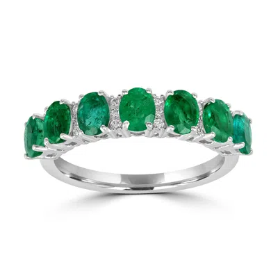 Women's White / Green Oval Cut Emerald Pave Diamond Band Ring In White Gold In Multi