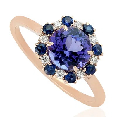 Women's Blue / White / Rose Gold Tanzanite & Sapphire Pave Diamond Solitaire Ring In 18k Rose Gold