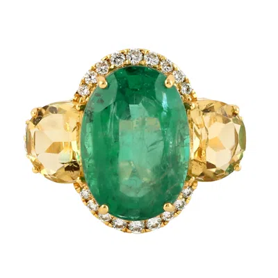 Women's Citrine & Emerald Gemstone Pave Diamond Three Stone Ring In Gold In Multi