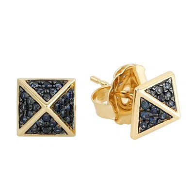 Women's Gold / Blue 18k Yellow Gold Pyramid Stud Earrings With Blue Sapphires In Multi