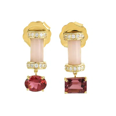 Women's Gold / White 14k Gold Dangle Earrings With Pink Tourmaline, Opal & Pave Diamond In Multi