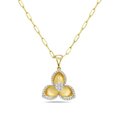 Women's Gold / White Natural Diamond Three-leaf Flower Pendant In 14k Yellow Gold