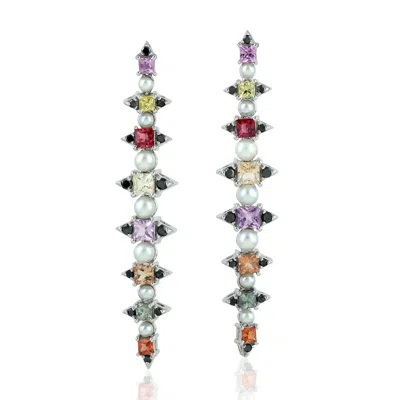 Women's Multi Sapphire & Pearl Diamond Dangle Earrings In 18k White Gold In Metallic
