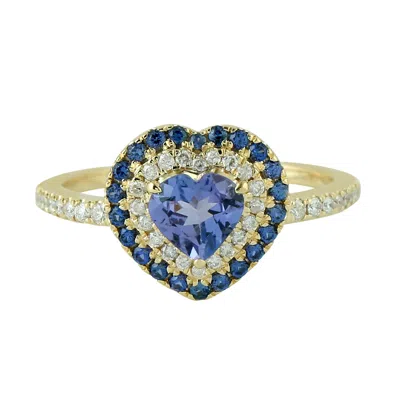 Women's White / Gold / Blue Blue Sapphire & Tanzanite Pave Diamond Heart Ring In 18k Gold