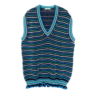 Green / Blue Yeah! Cozy Wool Ruffles Stripes Oversized Pullover - Men