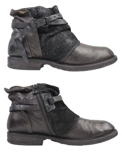 Pre-owned 2000s A.s.98 Artisan Hybrid Distressed Leather Ankle Boots In Black