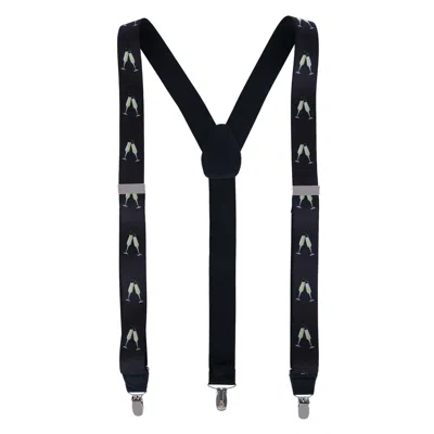 Champagne Bottle Print Clip End Suspenders In Black