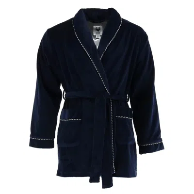 Men's Velour Smoking Jacket With Satin Lining In Blue