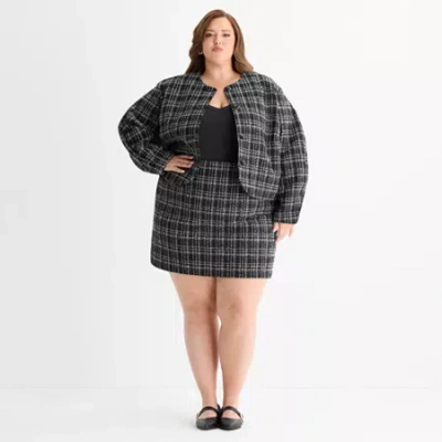 Tweed Womens Plus Boucle Suit Jacket In Black