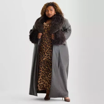 Womens Plus Faux Fur Midweight Cropped Coat In Gray
