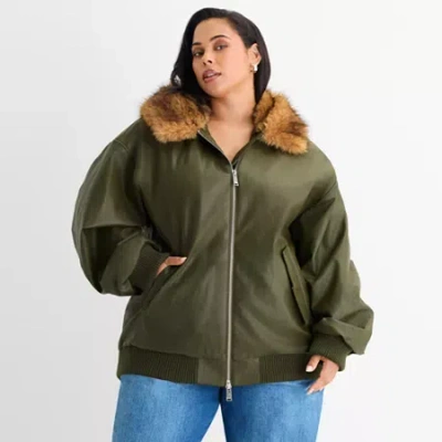 Womens Plus Faux Leather Midweight Motorcycle Jacket In Brown