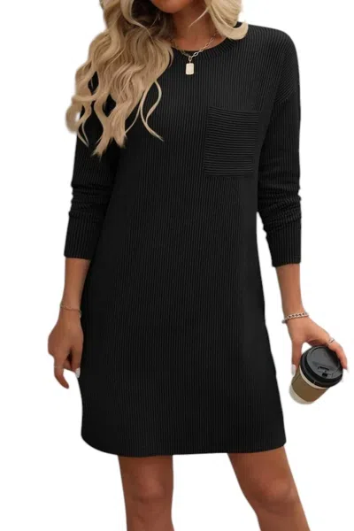 Aurora Ribbed Knit Chest Pocket Dress In Black