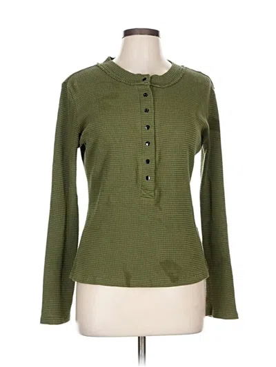 Pre-owned Long Sleeve Top Green Keyhole Neckline Tops