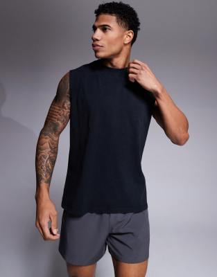 Icon Oversized Cotton Pump Training Tank With Quick Dry Finish In Black