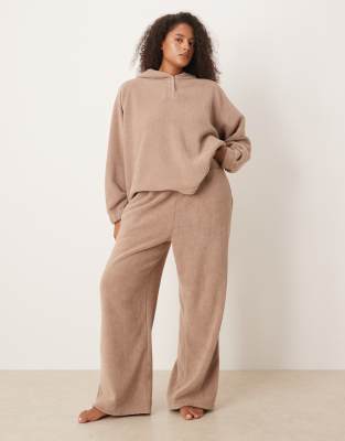 Asos Design Curve Lounge Microfleece Wide Leg Pants In Gray