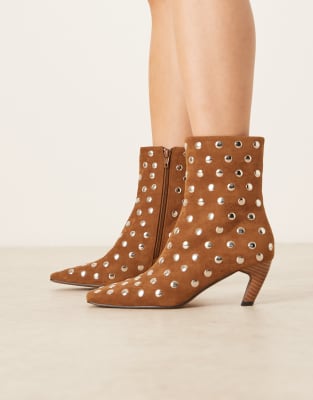 Raye Studded Chisel Toe Ankle Boots In Brown