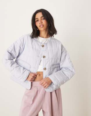 Quilted Zip Through Jacket In Washed Blue-multi