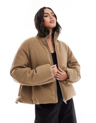 Knit Collar Clean Puffer Jacket In Mushroom-black