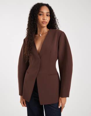 Tailored Sculpted Cinch Waist Zip Up Jacket In Brown