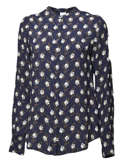 Geometric-pattern Silk Shirt In Blue