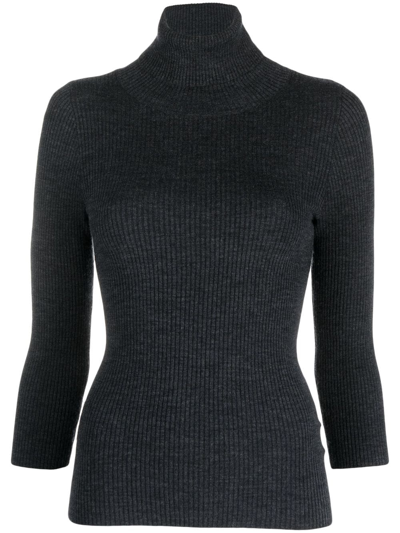 Ribbed-knit Roll-neck Knitted Top In Schwarz