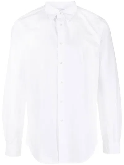 Linen Shirt With Pointed Collar And Rounded Hemline In White