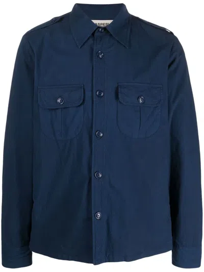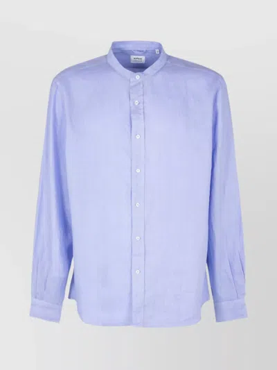 Linen Shirt With Long Sleeves And Mandarin Collar In Blue