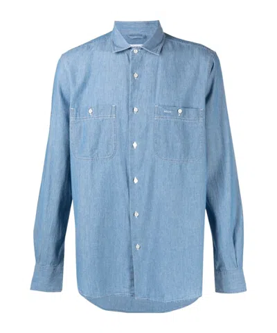Silk Nylon Shirt Button Down Collar Pockets In Blue