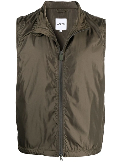 Technical Zipped-up Gilet In Green