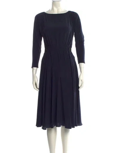 Pre-owned Bateau Neckline Midi Length Dress In Blue