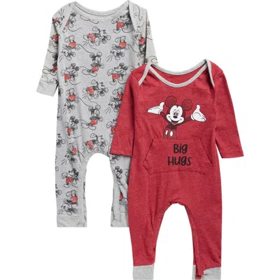 Babies' 2-pack Mickey Mouse Rompers In Gray