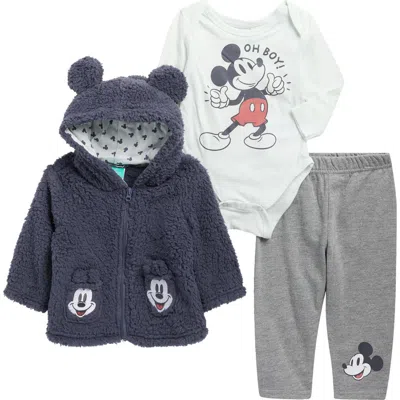 Babies' Mickey High Pile Fleece Jacket, Bodysuit & Pants Set In Multi